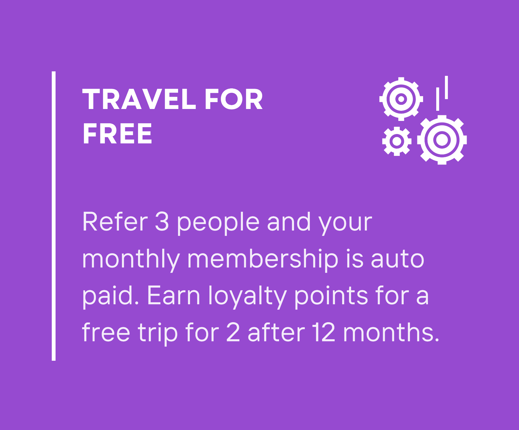 Just like Netflix or Costco, join the monthly membership and get exclusive access to deep discounts on everything travel. Every month you’ll rack up loyalty points, travel credits, and earn a free trip for 2 every year.
